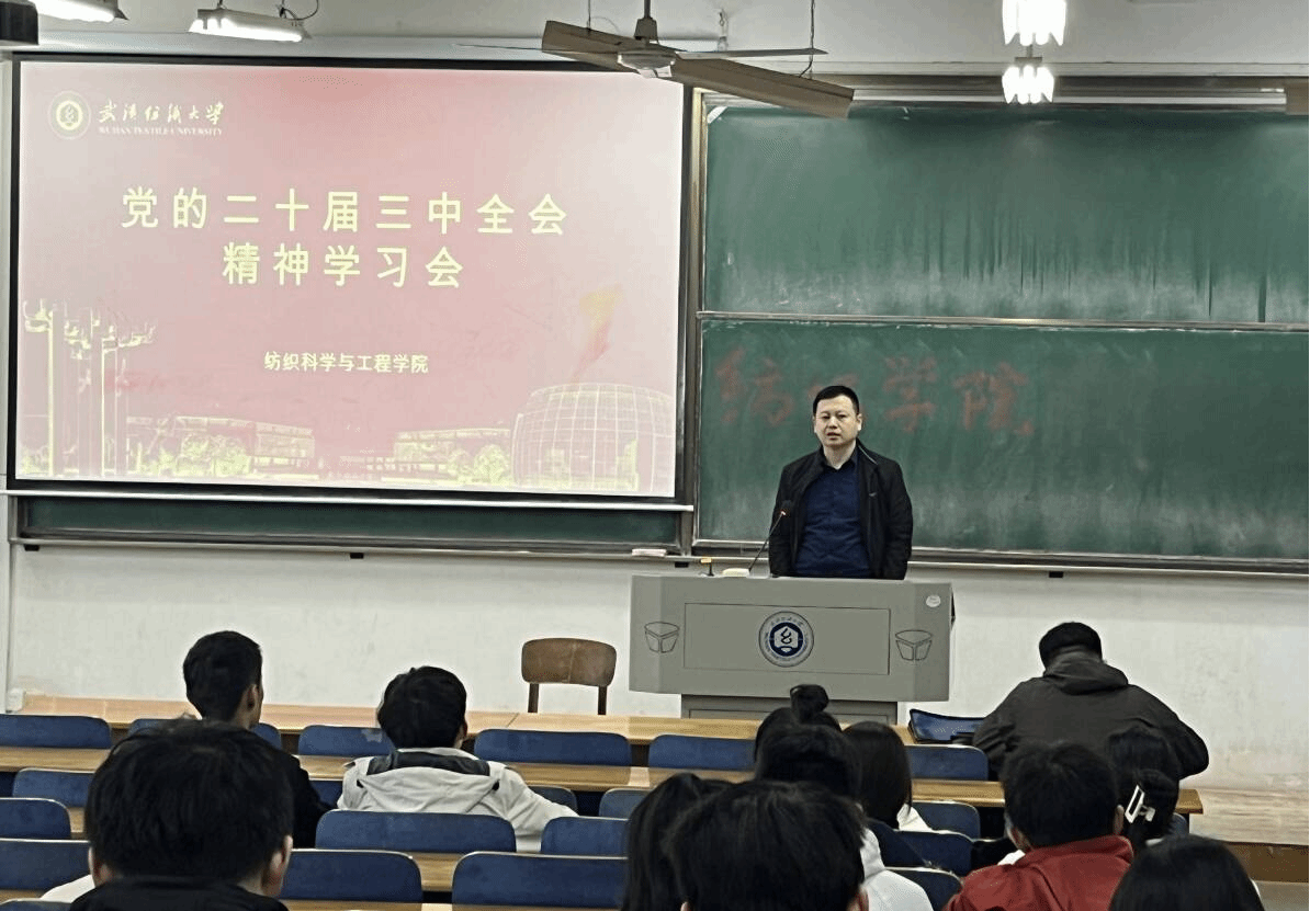赵亮从全会的重大意义、主要内容和精神实质等方面进行了系统阐述和深入解读,并结合纺织行业的发展现状和趋势,阐述了全会精神在推动威廉希尔体育学科建设、人才培养、科技创新等方面的指导意义,鼓励学生要以全会精神为指引,积极投身到学院发展和纺织行业的建设当中。他寄语全体同学以此次宣讲会为契机,努力提高自身的综合素质和创新能力,提高政治站位,为学院的发展和学校的 “双一流” 建设做出更大的贡献。