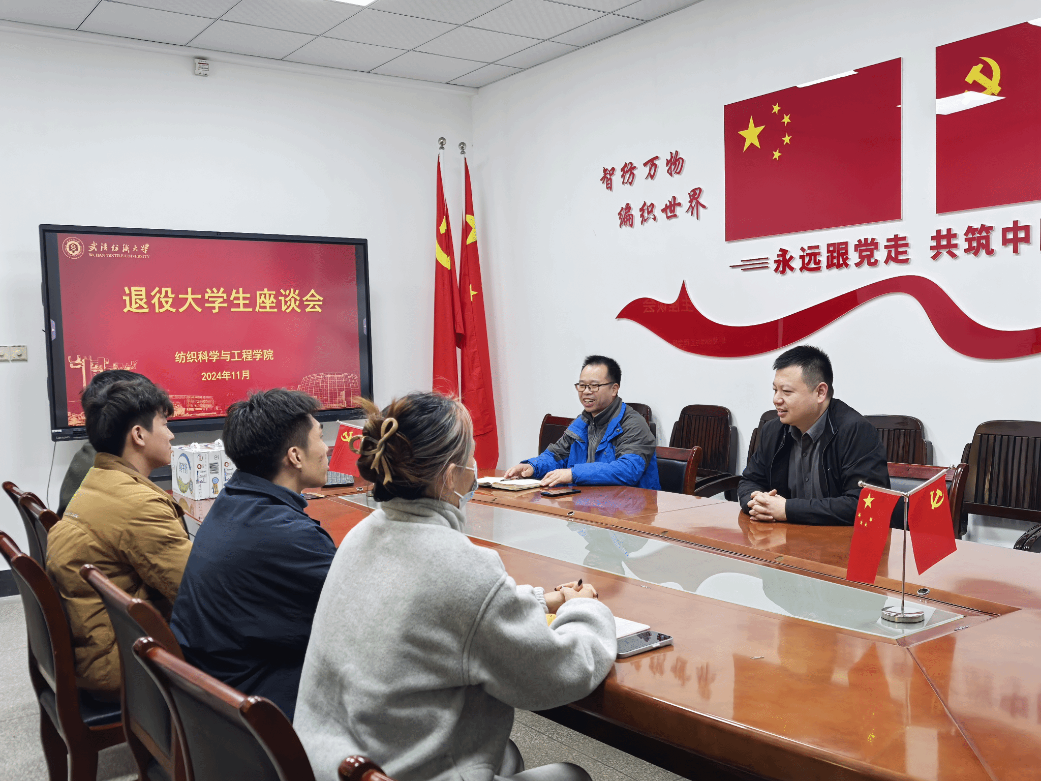 朋辈咨询结束后,赵亮与在校的退役士兵进行了座谈、慰问,认真听取了大家在部队训练、执勤和生活情况的汇报,详细了解了大家入伍和退役时的适应情况,以及当兵给自己成长包括身体带来的各方面变化。并征询大家对学院征兵服务工作的建议。赵亮对大家勇担青年使命投身国防表示崇高敬意,对大家不畏训练的艰辛、不畏执勤的挑战表示赞赏。希望大家继续发扬部队的作风,努力学习攀登科研高峰,不断用创新去武装我们的国防。