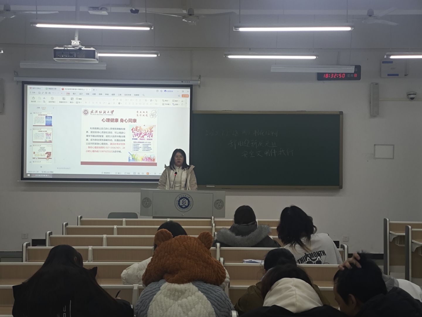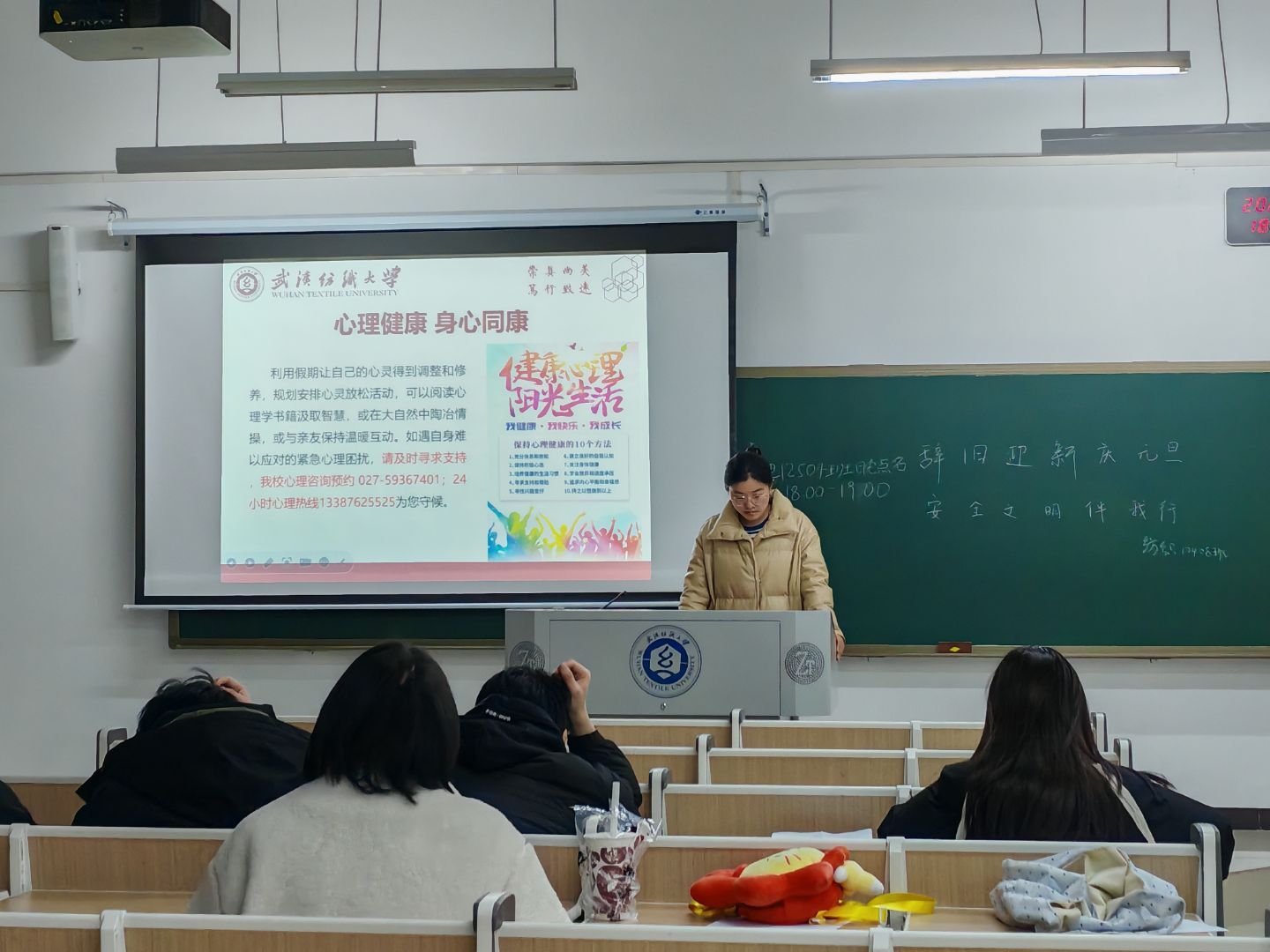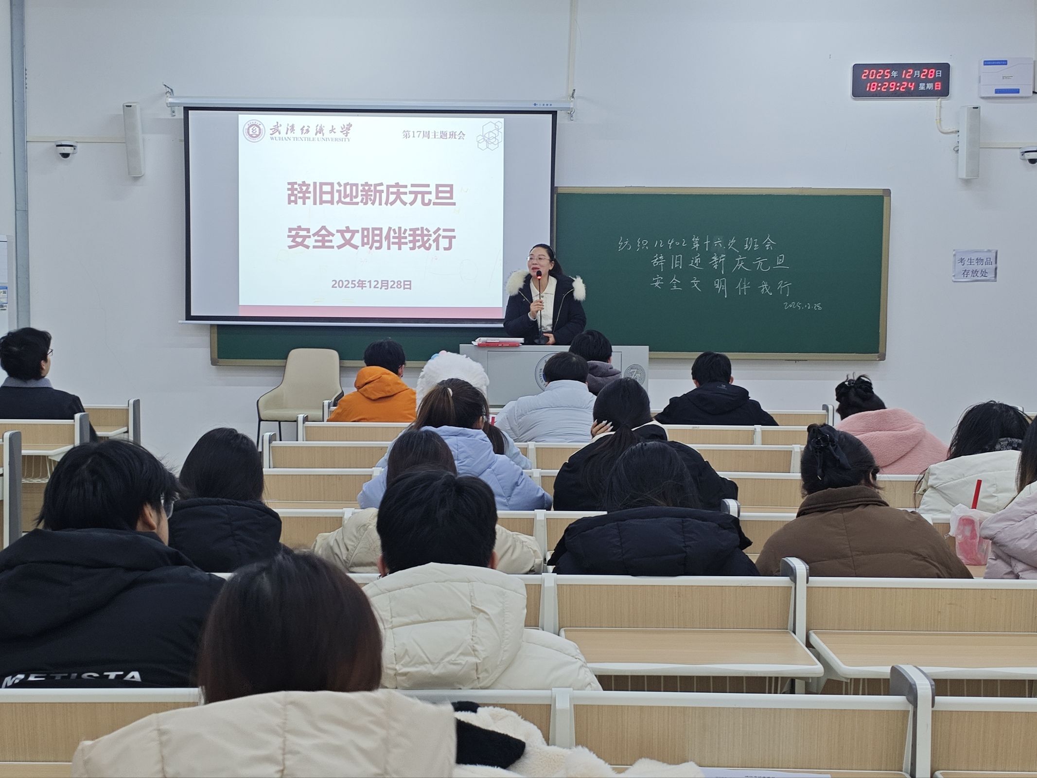 班会上,班主任辅导员老师系统梳理元旦节日历史由来、阐释其文化内涵,引导学生理性看到“洋节”和传统节日。老师们还聚焦“安全防护”与“文明过节”两大重点,紧密结合大学生生活场景开展针对性引导,在“安全护航元旦”专题板块,重点围绕假期安全、校园安全、网络安全三大维度进行全面细致的强调部署,为全体同学度过平安祥和的元旦假期筑牢基础。