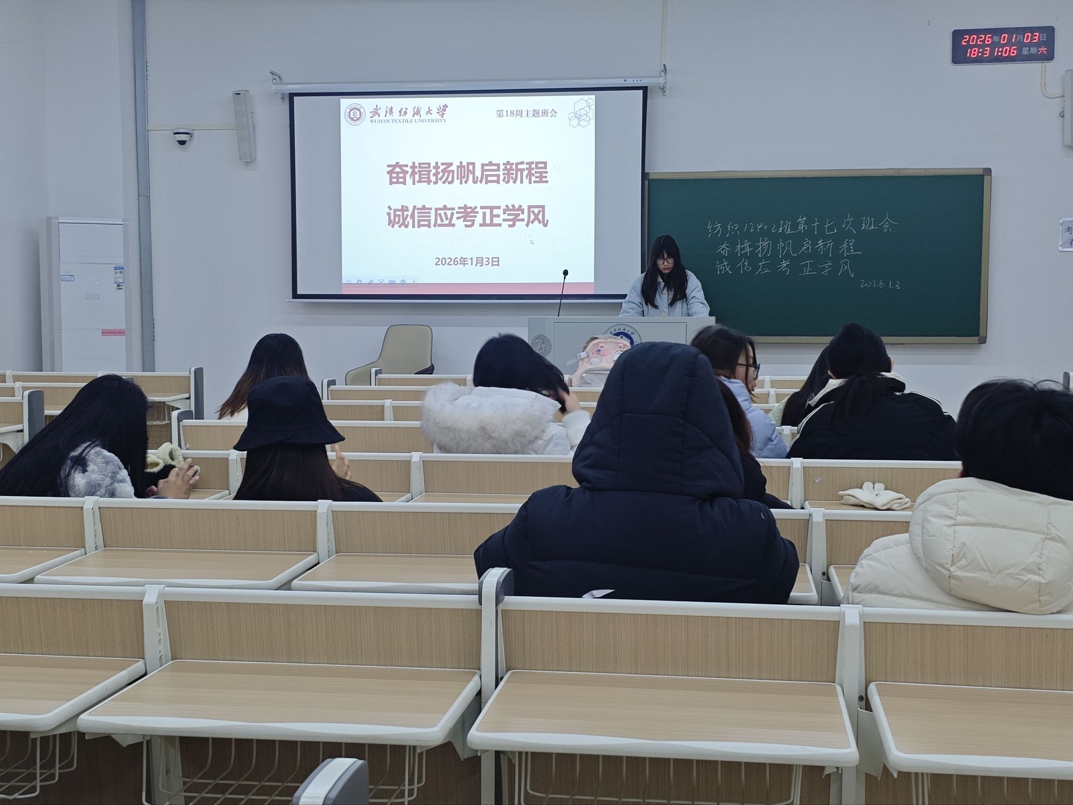 此次主题班会的召开,是威廉希尔体育落实“三全育人”理念的具体实践,既为学生营造了辞旧迎新的温馨氛围,也筑牢了安全文明的思想防线。元旦不仅是辞旧迎新的节点,更是梳理规划、积蓄力量的契机。希望同学们在享受节日氛围的同时,始终把安全放在首位,以文明行为展现威廉希尔体育学子的良好风貌,用充实的状态迎接新一年的学业与成长。