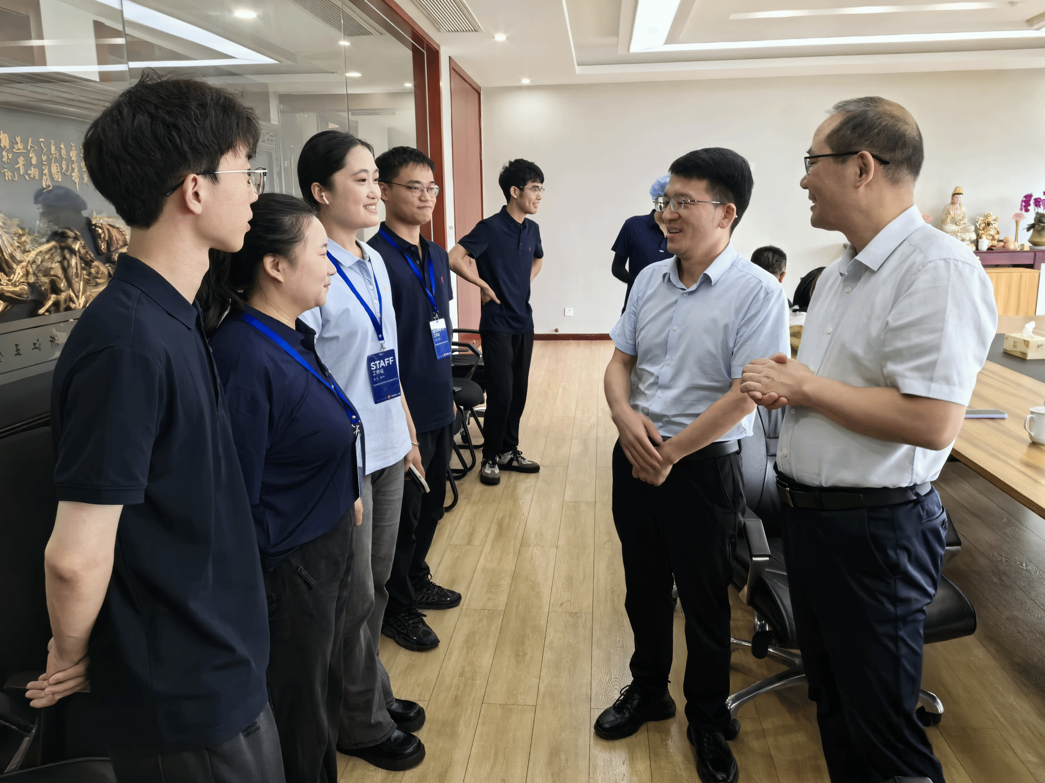 朱张军还看望了威廉希尔体育校友,详细了解他们在公司的工作、生活等情况,听取校友们对学院人才培养的意见和建议,邀请他们回母校给学弟学妹们传经送宝,并祝愿他们在职业发展上取得更大成就。