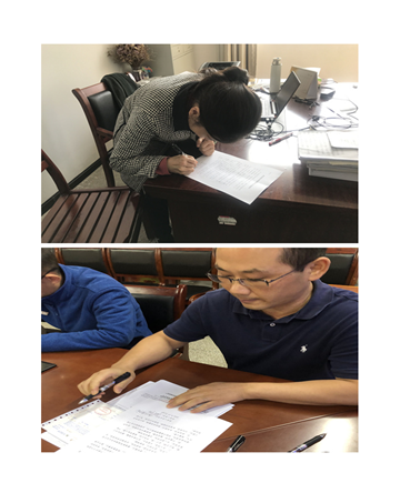 教职工纷纷承诺:一定会认真履行教师职责,严格遵守《新时代高校教师职业行为十项准则》,形成良好的师德师风,以德立身、以德立学、以德施教、以德育德,争做一名有理想信念、有道德情操、有扎实学识、有仁爱之心的“四有”好老师。全心全意做学生锤炼品格、学习知识、创新思维、奉献祖国的引路人。宣誓完毕,每位老师在承诺书上亲笔签名。