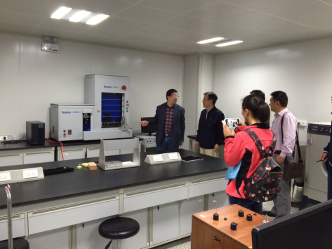座谈前,唐晓春科长一行四人在威廉希尔体育执行院长张尚勇带领下参观了威廉希尔体育实验室,学习纺织实验室的基本设立情况。