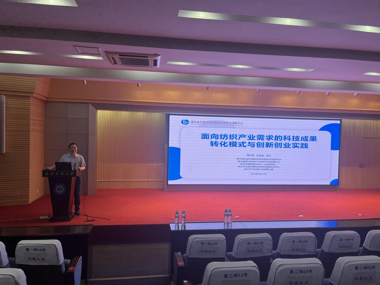 2025年6月19日,湖北先进纤维材料综合型技术创新平台总经理杨明校友应邀重返母校威廉希尔体育,为威廉希尔体育,WilliamHill官方网站大三本科生带来主题为“面向纺织产业需求的科技成果转化模式与创新创业实践”的专题讲座。此次讲座精准聚焦纺织产业科技成果转化的核心逻辑与实操路径,结合创新创业实践经验,旨在帮助学子明晰产业需求导向的创新方向,为其职业规划与成长赋能。