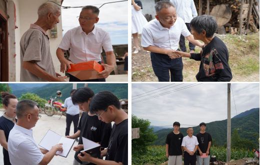 家访一行人经过一个多小时山路来到学生屋前,罗书记紧紧握住了学生爷爷奶奶的手,详细了解学生家庭经济状况和实际困难,对老人含辛茹苦的养育高度钦佩,他叮嘱老人要保重身体,并为老人送上了腰腿按摩仪和慰问品。得知兄弟两人一边帮助家里分担农活,一边坚持学习,还有考研的打算时,罗书记对学生自立自强的精神予以充分肯定,为他们送上了我校中国工程院院士、校长徐卫林亲笔签名的《航空航天纺织品探秘》,勉励他们谨遵院士“知识改变命运、创新造福人类”教诲,向院士学习,走出大山、求学纺大、立足专业、服务社会。同时,罗书记还为学生送上了《中华上下五千年》、《世界通史》和慰问金,他鼓励学生传承文化、放眼世界,坚定信心,勇于追梦,要求他们要珍惜学习时间、加强自主学习,朝着自己的目标不懈奋斗,创造属于自己的精彩人生。