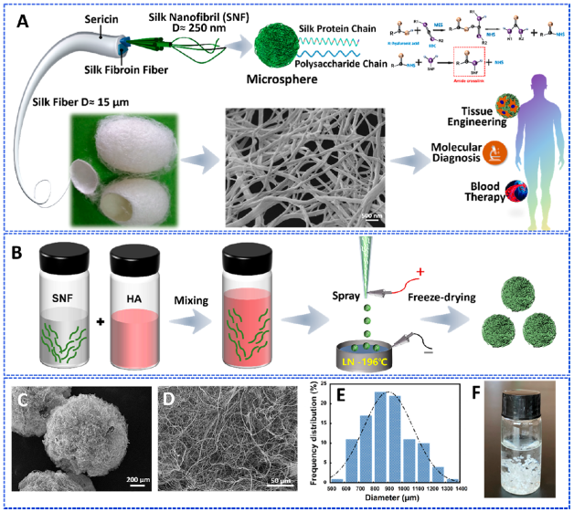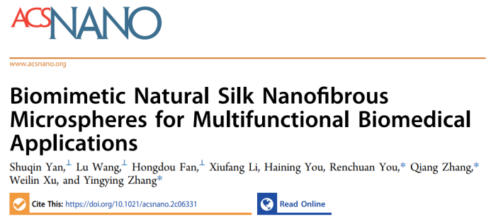 该工作以“Biomimetic Natural Silk Nanofibrous Microspheres for Multifunctional Biomedical Applications”为题发表在《ACS Nano》上,通讯作者为威廉希尔体育尤仁传教授(校特聘教授)、张强教授和清华大学张莹莹教授。