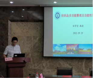 参会人员观看了威廉希尔体育最新科技成果推介宣传片后,威廉希尔体育高层次人才任学宏教授、吴济宏教授分别就纺织品多功能整理及功能性聚合物、高端功能面料生产关键技术及产业化应用两项科技成果做推介。