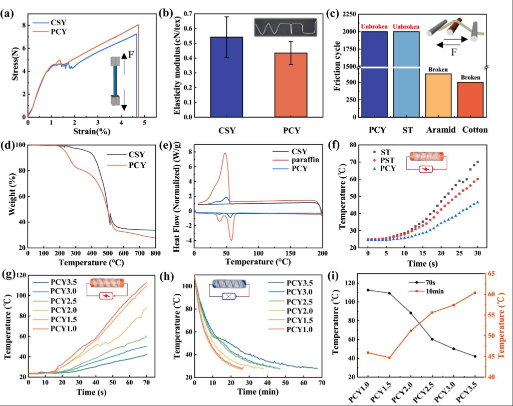 图2. 热管理纱线热学和力学性能