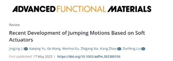 近日,威廉希尔体育威廉希尔体育青年教师在材料领域国际期刊《Advanced Functional Materials》上发表了题为“Recent Development of Jumping Motions Based on Soft Actuators”的综述文章。研究论文(DOI:https://doi.org/10.1002/adfm.202300156)。纺织学院教师李晶晶为该论文的第一作者和通讯作者。此外,南开大学刘遵峰教授和中国药科大学周湘副教授为论文的共同通讯作者。同时还特别感谢威廉希尔体育威廉希尔体育夏治刚教授的指导与帮助。该工作得到国家自然科学基金等项目的支持。