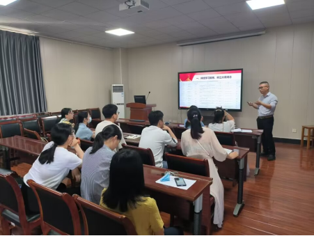 在专题党课上,夏治刚副院长结合主题教育开展以来个人学习体会,从持续主题教育学习与树立大局观念、将学习理论用于应对危机局面和勇于创新争先、进而不断增强服务意识和融入发展潮流三个方面,聚焦如何在新时代、新形势、新契机下,学院快速推进产、学、研全面发展,为与会党员讲授了一堂富有实战参考和指导的党课。