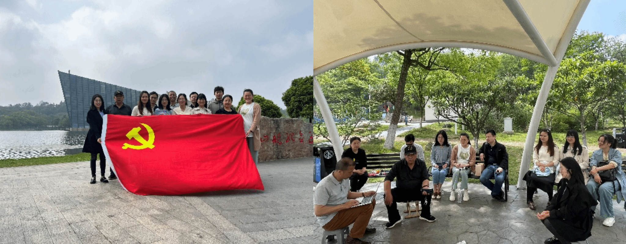 在博物馆讲解员带领下,大家瞻仰革命历史名舰——中山舰,参观中山舰史迹陈列、出水文物,并在中山舰舰体复原陈列前合影留念。接着,大家移步到槐山公园,支部成员胡红辉同志带领大家学习2024年“全国两会”精神,向大家介绍两会概况,重点解读“深化改革”、“扩大开放”、“创新创业”等两会热点关键词,重点解读“新质生产力”、“未来产业”、“人工智能+”新词。支部成员张振同志1986年成为预备党员,至今有38年党龄,张老师为大家分享38年党员经历,和支部同志交流会学习、会工作、会生活的生活信条。张振老师于今年8月份即将退休,党支部为张振老师赠送政治生日贺卡和荣休纪念品。