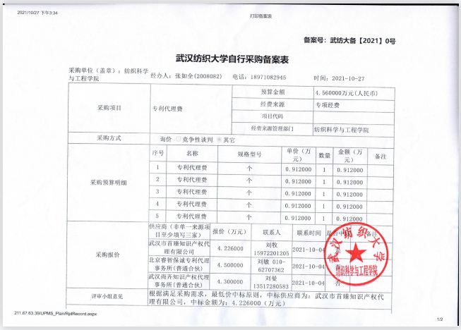 威廉希尔体育威廉希尔体育专利代理费的公示