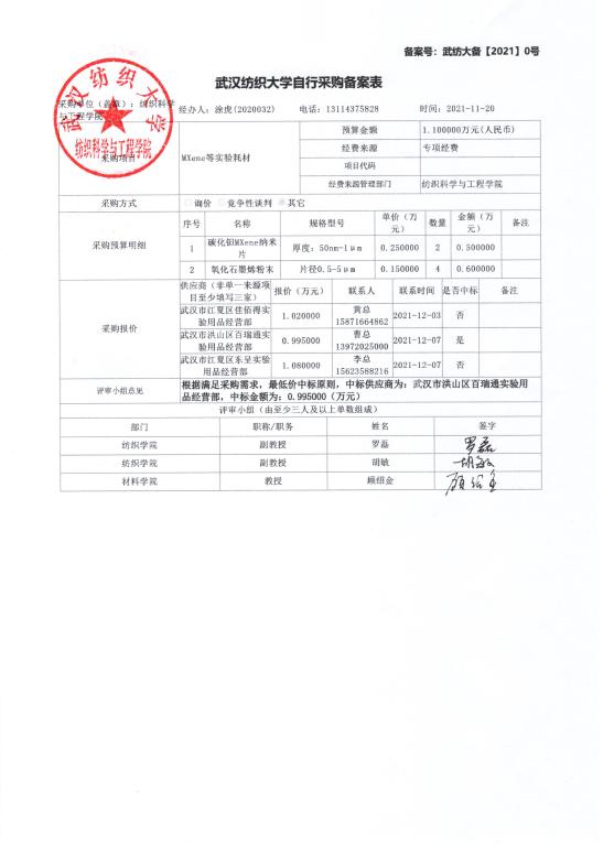 威廉希尔体育MXene等实验耗材的公示