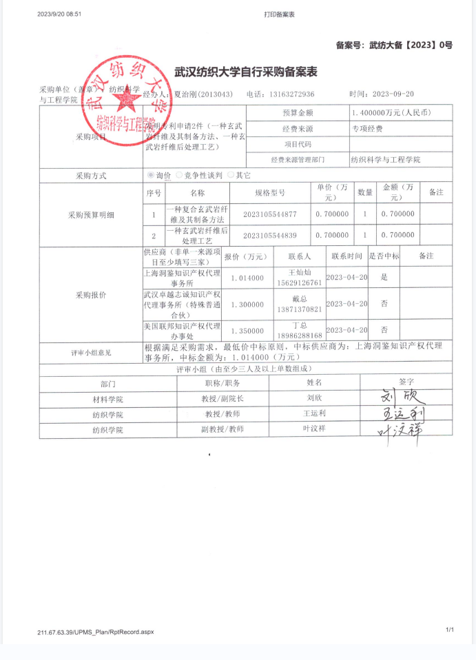 威廉希尔体育发明专利申请采购费用申请