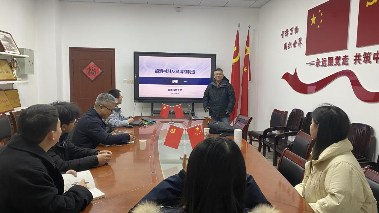 夏治刚首先介绍了苏彬教授的科研、工作经历,并对苏彬教授的出席表示了热烈欢迎。讲座中,苏彬教授以“超滑材料及其增材制造”为题,介绍了该课题的研究背景,并分享了他在采用多粉材激光增材制造方法制造超滑材料的研究进展,并对未来进行展望。交流中,苏彬教授和参会的青年教师就激光增材制造方法等问题进行了热烈的交流,为师生们答疑解惑,并为学院青年教师基金申报工作进行了指导和辅导,并祝学院在2026年基金申报工作中一帆风顺、满载而归。参会教生表示讲座内容干货满满、收获满满。最后,参会师生对苏彬教授表示了诚挚感谢。
