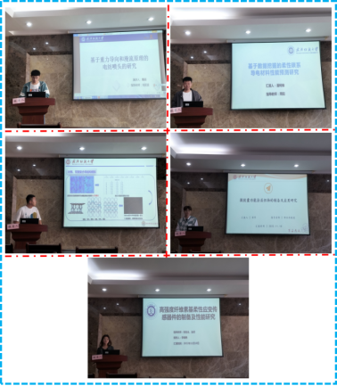 论坛上,董超、潘柯维、郑小号、程军、李晓艳五位同学分别介绍了自己的研究课题和目前取得的研究进展,并分享了自己的科研经验。主讲同学的研究课题涵盖了静电纺织、多层纬编材料、微胶囊功能涂层织物、柔性应变传感器等领域,契合了“纺织新材料及绿色加工”主题,代表了学院最新研究进展,营造了良好的学术氛围。