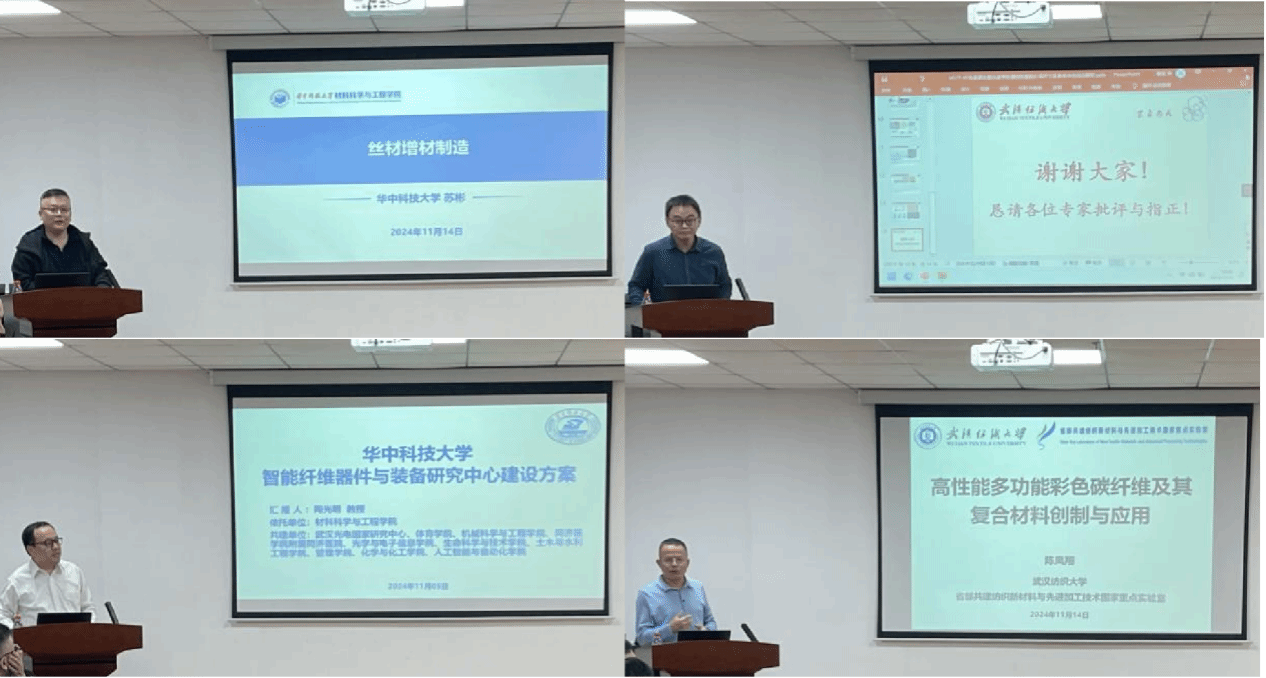 本次学术沙龙活动中,华中科技大学材料科学与工程学院陶光明教授、苏彬教授以及威廉希尔体育国家重点实验室陈凤翔教授、威廉希尔体育,WilliamHill官方网站周熠副教授分别做题为“智能纤维器件与装备研究中心建设方案”、“丝材增材制造”、“高性能多功能彩色碳纤维及其复合材料创新与应用”和“MSTF-KF体系柔性复合装甲抗侵彻性能的介观尺寸及多点冲击效应研究”主题报告,报告围绕涵盖了智能纤维器件与装备、丝材增材、碳纤维及其复合材料和柔性复合装甲等方面的应用探索展开交流,契合了“纺织与材料交叉”主题,为在场师生呈现出一场精彩纷呈的学术盛宴。