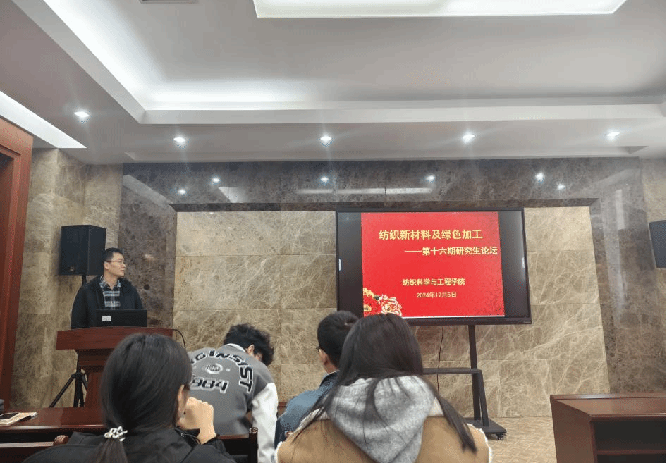 为了进一步促进学院的科研工作,加强师生间的学术交流,提高研究生素质和学术氛围,我院于12月5日下午15:45举办了第十六期“纺织新材料及绿色加工”研究生论坛。