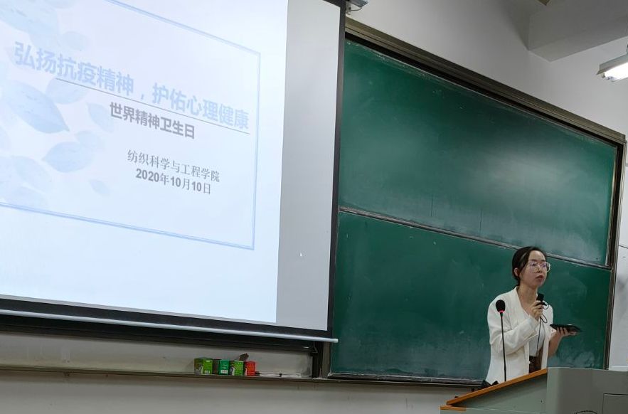 活动伊始,吴童玲为新生们讲解了各种心理疾病为人类带来的不可磨灭的伤害,让同学们对于心理健康的重要性有了初步的认识,接下来她向同学们展示了由织心湾准备的以守护心理健康为主题的视频,视频介绍了维护精神卫生的重要性和维护精神卫生的方法,如积极运动、保持良好作息习惯等,同时介绍了科学预防心理疾病的方法,使同学们对精神卫生的维护有了更加深刻的认识。