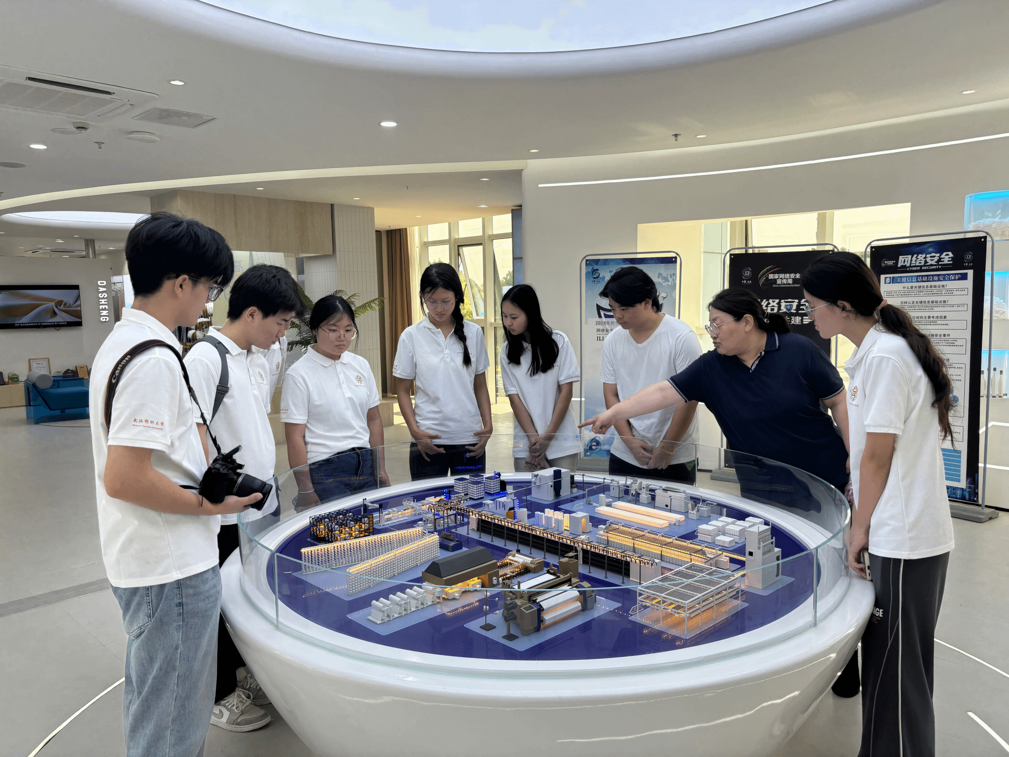 在苏州调研期间,实践团还与盛泽镇政府开展了座谈交流,参观了国家先进功能纤维创新中心,多种形式调研了当地纺织产业深度融合人工智能、大数据、云计算等要素构建“AI+纺织大模型”的发展现状。实践团成员纷纷表示,将把所见所闻转化为学习动力,努力成长为适应行业发展需求的高素质人才。