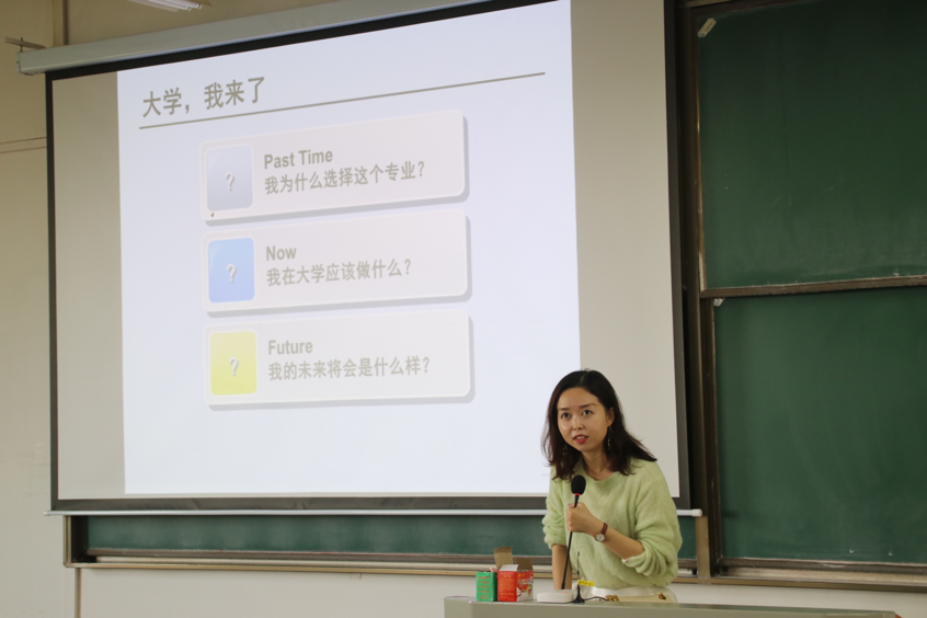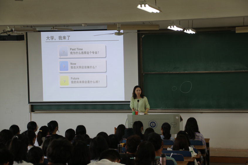 会议伊始,吴童玲老师向同学们表示亲切的问候。随后,吴童玲结合自身实际,从填报志愿、想象中与实际中的大学生活、大学各阶段的困难,未来目标选择展开讲解。吴童玲说:“进入大学首先要明确自己今后的就业方向或者求学方向,处理好人际关系,合理规划,抓住机会提升自己。吴童玲老师重点讲解大学期间提升自我、提高人际交往能力,自主学习能力、以及未来的打算四个方面,希望同学们能在大学期间锻炼自己的大智慧、大视野,成长为一个德才兼备的新时代青年!