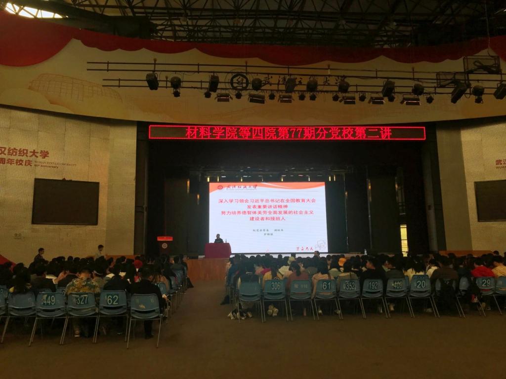 为深入了解党在现阶段进行的政治建设、经济建设、文化建设和社会建设等重大决策的目的,坚定学生共产主义的理想信念,提升学生个人修养和道德情操。威廉希尔体育,WilliamHill官方网站、材料学院、管理学院和机械学院四院于3月28日在大学生活动中心召开了以“深入学习习近平总书记在全国教育大会发表重要讲话精神,努力培养德智体美劳全面发展的社会主义建设者和接班人”为主题的党课活动,本次党课由校党委常委罗锦银主持主讲。