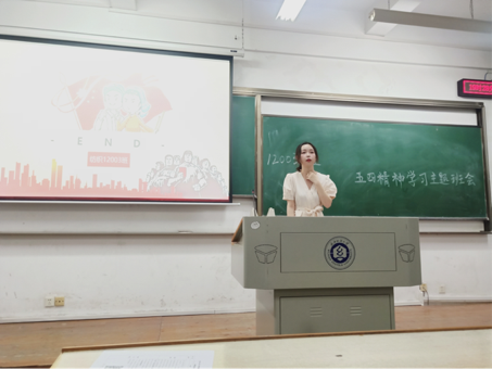 辅导员吴童玲老师发言,她勉励青年大学生要铭记“五四”精神,努力成为对社会有用的人才,发挥青年之力,发光发亮,为实现中华之崛起而不懈努力。最后,院团委书记李亮老师就习近平总书记在4月19日考察清华大学时的讲话对学院青年学子寄语:“希望年轻一代努力学习以回馈我们的小家与全国人民的大家。牢记社会主义核心价值观,树立高远志向,传承先辈伟大精神,脚踏实地!让我们做历史洪流中的坚定者、奋进者和搏击者,沿着中国特色社会主义这条正确道路坚定不移走下去,朝着实现中华民族伟大复兴的中国梦奋勇前进!”