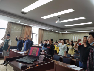 会议伊始,全体党员齐唱国歌,在研究生党支部组织委员王凯的带领下,大家紧握右拳,以铿锵有力的声音重温入党誓词,提醒我们不忘初心、牢记使命。
