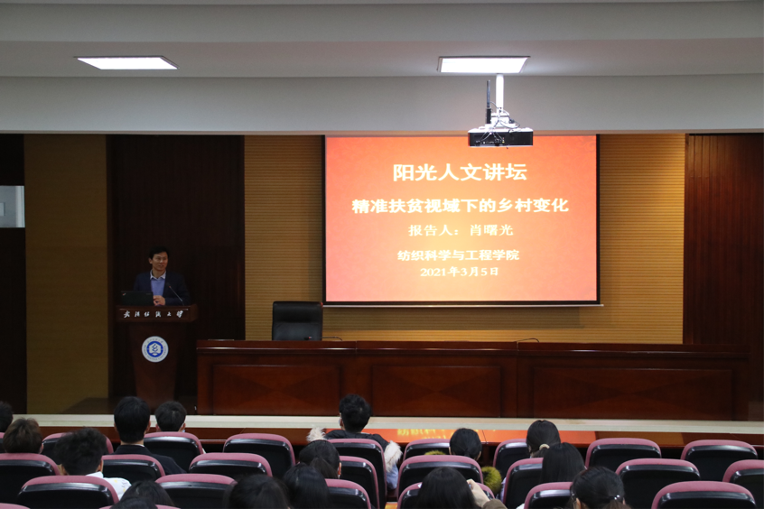 2021年3月5日下午,由校团委主办、威廉希尔体育,WilliamHill官方网站承办的第222期阳光人文讲坛在阳光校区行政楼报告厅举行。本次讲坛邀请到了全国脱贫攻坚先进个人、宜昌五峰土家自治县红旗坪村驻村第一书记、“中国好人”、荆楚楷模、威廉希尔体育校友肖曙光为全校近百名师生带来了以“精准扶贫视域下的乡村变化”为主题的报告。威廉希尔体育党委书记张红鑫及学院学工干部聆听了报告。