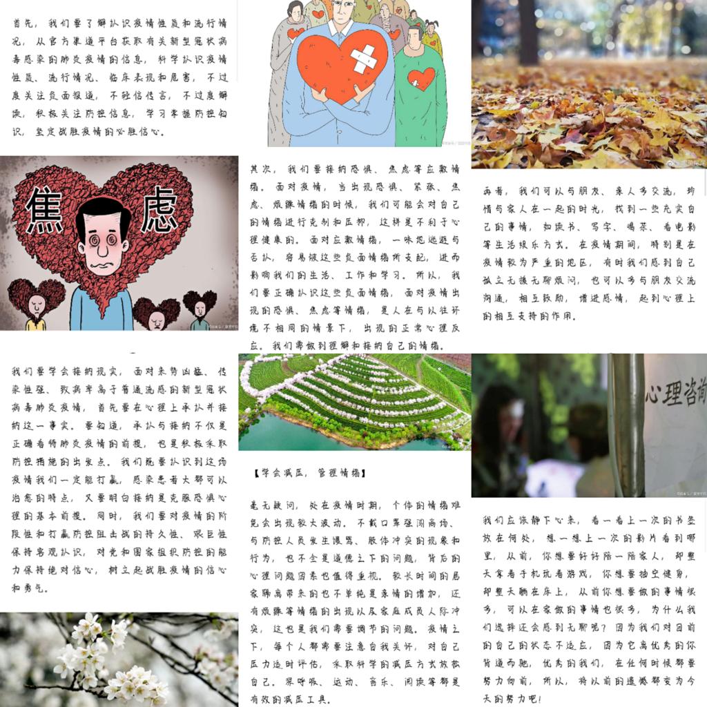 在这次班会的最后心理委员提出了“面对疫情,我们应该如何调控自己的情绪”的问题,同学们踊跃发言,给出了自己的答案。通过这次班会,我们学习了许多疫情知识,了解到疫情并不可怕,科学防控很重要;学会了正确接纳自己的负面情绪,学会了充实自己转移注意力,从而达到减压的的效果。 我们为武汉加油!中国加油!
