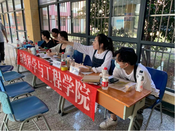 迎接当天,晨曦微露,接待工作人员清早就等待在8栋教学楼的迎新点,以饱满的精神状态迎接新生。当迎来第一个新生的到来时,学长学姐们热情接待,为新生答疑解惑。审核材料、保险缴费、领取物资……各项工作都有条不絮地开展着。