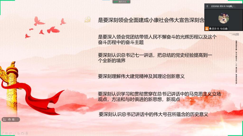 威廉希尔体育2018级-2020级各班团紧抓假期机遇,结合疫情防控要求,在线上学习习近平总书记“七一”重要讲话全文,深入了解中国共产党的光辉历史、以及建党百年所取得的伟大成就,引导广大学生更加坚定“四个自信”,增强“四个意识”,坚决做到“两个维护”,从而能够深刻认识到作为当代大学生,应不忘青年的初心和使命,努力成为新时代具有远大理想和坚定信念的爱国者;敢于担当、勇于奋斗,具有责任意识和创新精神的建设者。
