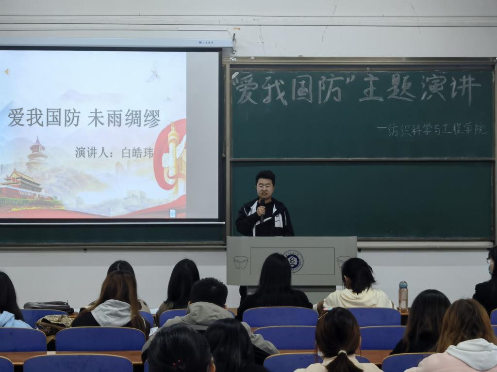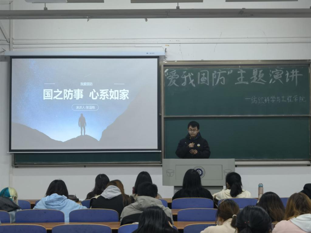 樊子靖及葛佳莉同学以“ 爱我国防,共筑长城”为题,用双人演讲的形式,绘声绘色地从现在的立场回顾百年征程,又从历史的角度看当今国防;冯林同学以“爱我国防,扬我国威”为题,结合梁启超、彭恒武、苏宁等爱国英雄,从军人、青年、国力三方面强烈表达了“犯我中华者,虽远必诛!”的国防决心;吕咏琳同学以“回首往昔,着眼当下“为题,在演讲中穿插歌曲,为同学们带来了身临其境的历史感,激励着青年一代奋勇直前。