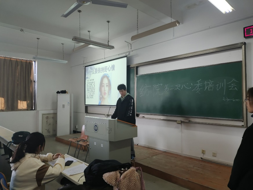 本次心理委员培训,大家都充分发挥自己的才思,认真听讲,并积极交换了意见。学期过半,大家或多或少都感受到了学习的压力,通过本次培训会,相信大家都能找到最适合自己的方法,保持好心情。