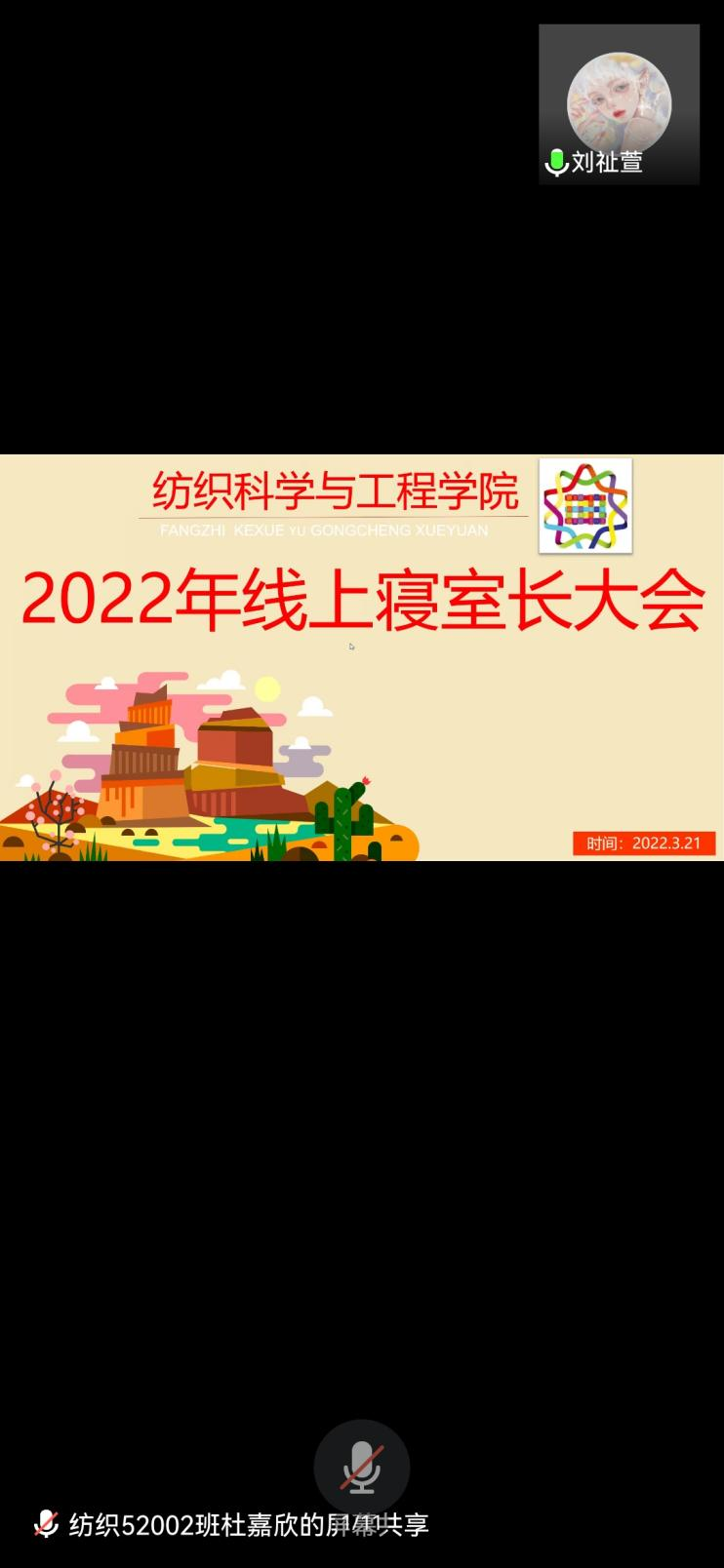 为了营造安全稳定的校园环境,再次敲响疫情防控警钟,威廉希尔体育于2022年3月21日晚通过腾讯会议开展全院寝室长大会。本次大会由院团委宿管会组织筹办,院党委副书记陈海、团委书记张竣青、各寝室长共同参与。