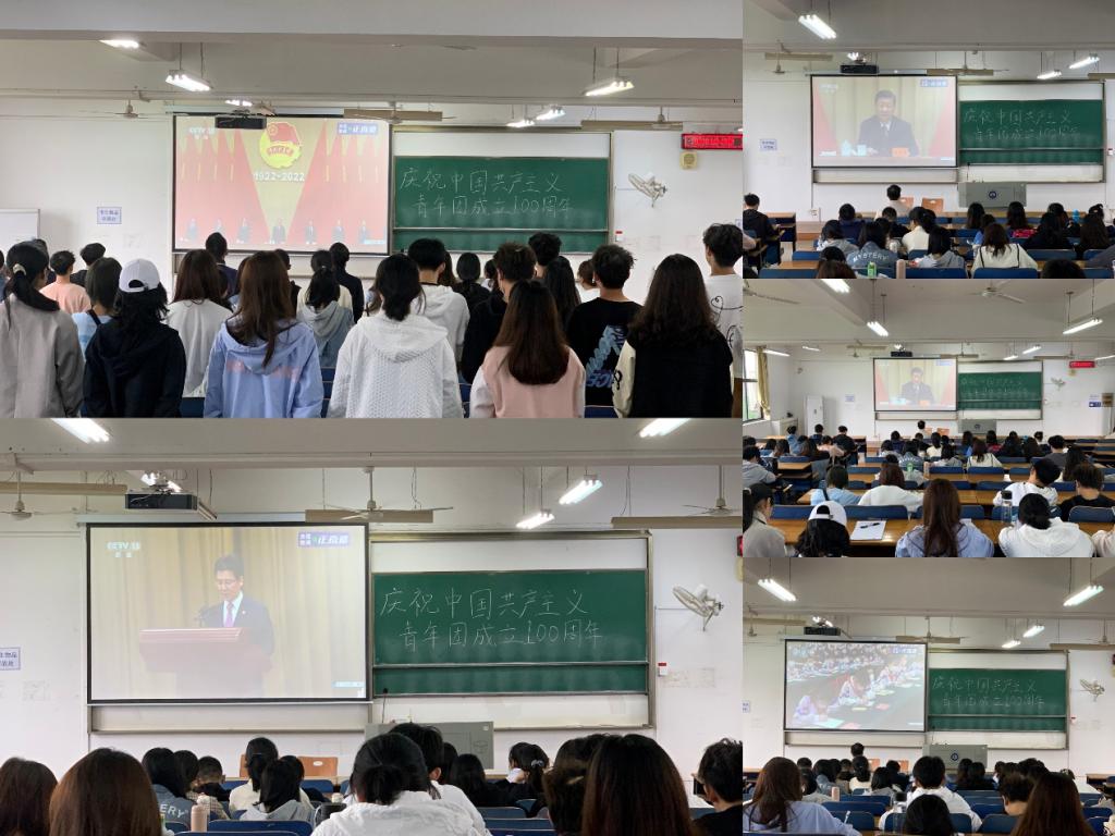 5月10日上午10时,庆祝中国共产主义青年团成立100周年大会在北京人民大会堂隆重举行。威廉希尔体育团委组织全体学生线上线下同步观看庆祝中国共青团成立100周年大会,学习习近平总书记在会上发表的重要讲话,共同回顾中国青年百年历程,领会新时代青年精神,了解青年肩负的时代责任,认清青年发展目标。