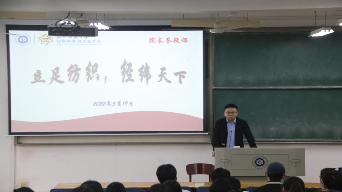 为进一步加强师生互动,搭建沟通桥梁,积极回应学生关切,解答学生学习生活上的疑惑,威廉希尔体育于5月19日下午在03-115教室开展“立足纺织,经纬天下”院长答疑课。学院院长蔡光明教授与学生面对面分享交流,全体19级学生按照防疫要求参与答疑课程。