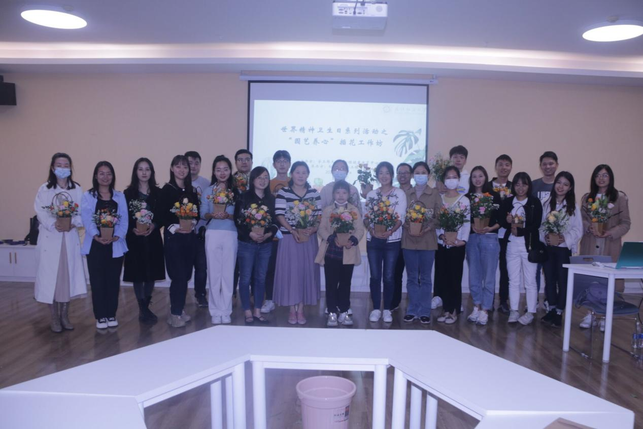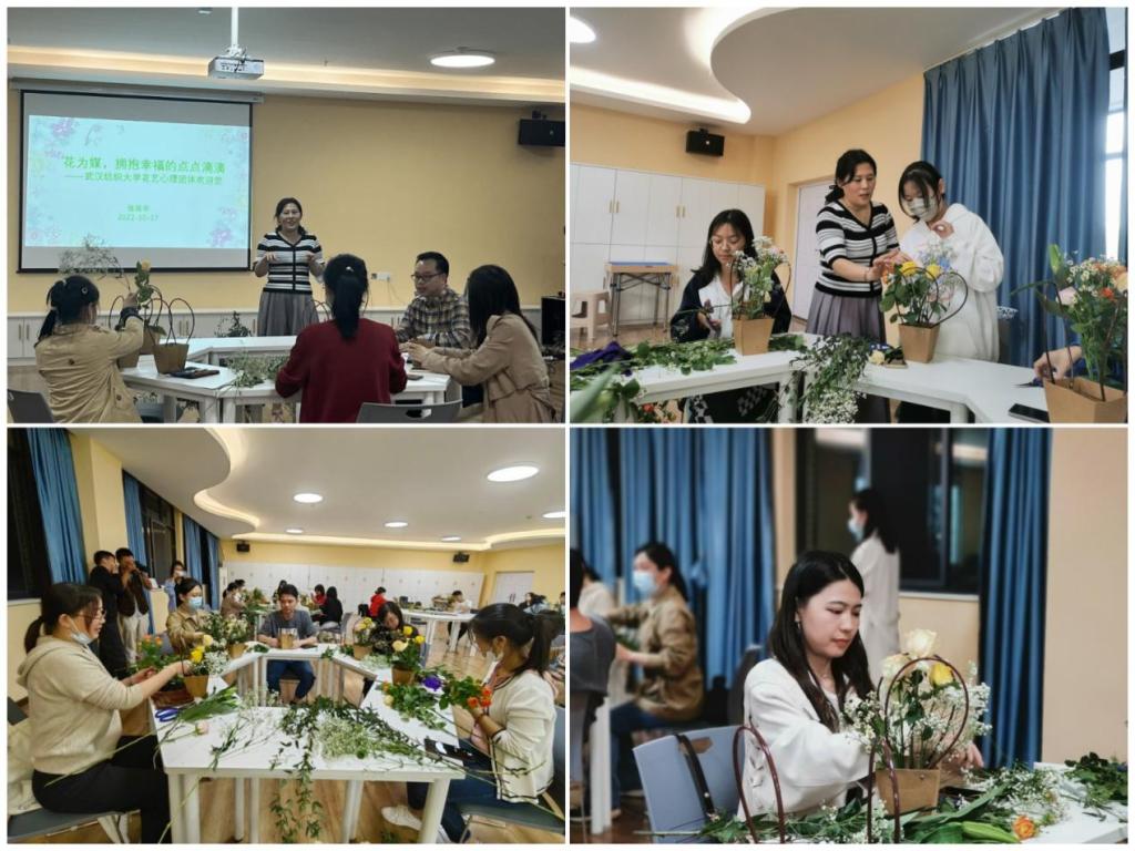 为帮助师生放松心情,释放压力,让老师和同学们以花为媒拥抱幸福。10月17日,由校学生工作部(处)、大学生心理健康教育中心主办,威廉希尔体育承办的世界精神卫生日系列活动之“园艺养心”插花工作坊活动在大学生活动中心205顺利举行。本次活动特邀华中农业大学大学生心理健康中心张延华副教授进行指导。