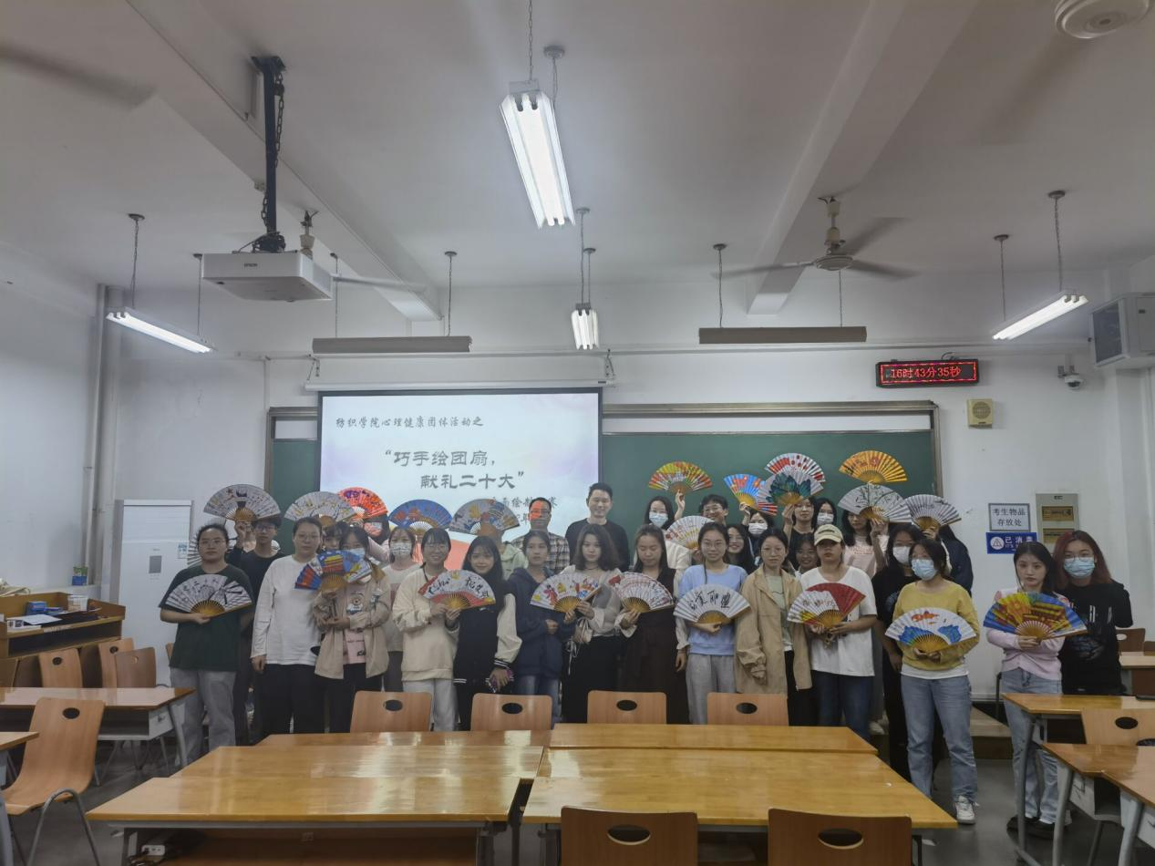 为深入学习贯彻党的二十大精神,丰富学生精神文化生活,11月10日下午,威廉希尔体育在03-213教室开展以“巧手绘团扇,献礼二十大”为主题的画扇绘制大赛。威廉希尔体育党委副书记李亮、辅导员和参赛学生共同参与。