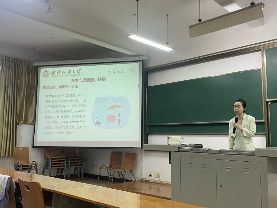 随后,辅导员又说到,开学前后的两周往往学生会出现一定的心理波动。这主要是由暑假生活与开学后的学习环境反差大造成的,同学们需要有一个主动适应的过程。在假期里玩得越“疯”,开学前后的心理不适反应可能越强,一定要引起重视。针对此现象,辅导员给出了端正心态,接纳情绪、调整生物钟、结合实际制定计划等五条建议,稳定了同学们开学焦虑不安的心情,为同学们快乐开学保驾护航。