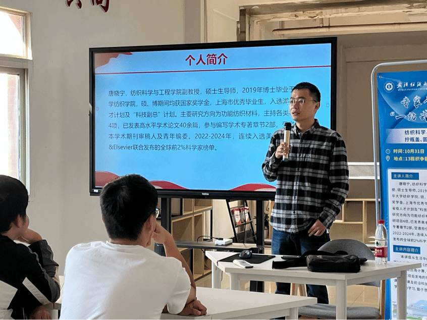 在交流互动环节中,学生们积极踊跃地向唐晓宁提问,例如“传统纺织日后的发展方向”、“马上面临的专业分流如何选择”、“如何选择科研方向”等。唐教授耐心细致地解答了同学们的疑问,并给出了宝贵的建议,进一步激发了学生对科研的兴趣和热情。在场同学纷纷表示日后会主动找专业课老师进行讨论交流,多阅览专业书籍,提升自身科学素养。