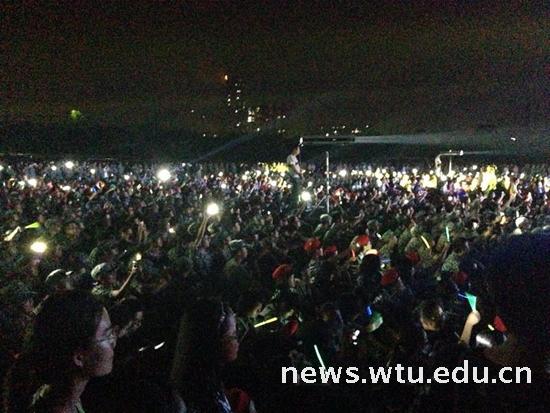 夜幕降临,然而军训仍在继续,所有的操练都成了一个巨大的才艺展示平台。在这里,有尽情的歌唱,那一首首的歌曲唱出了新生对未来生活的向往;有教官的涓涓教诲,那一句句的良言细语成为了新生未来生活的指路明灯。每个方阵都有歌唱,每个方阵都有欢声笑语,每个方阵都有那么一个良师,彼此相信,彼此真诚,就这样夜晚就悄悄的过去了。即使休息也不会放弃追求,在夜的歌声里成长,为梦想。