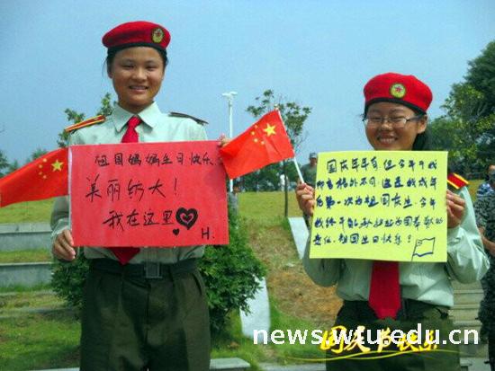 军训结束之际恰逢祖国母亲65周年庆典,在这个特殊的时刻,我们包含着对祖国深深的热爱之情,用自己的实际行动诠释着这份激动和感恩。在这军训即将结束之际,文字无疑是最好的表示,或精致隽永,或歪歪扭扭,亦或自由洒脱,这一段段感人肺腑的话语成了军训里让人难以忘怀的回忆。瞻仰国旗,整齐的步伐,一张张微笑的脸都表现出对军训的新的定义。就这样军训这个大熔炉给人以成长的机会,培养人吃苦耐劳的态度,让人明白坚持的意义。