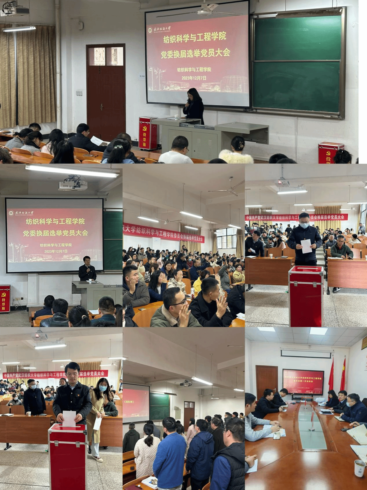 随后,按照大会通过的选举办法,到会的全体正式党员以无记名投票的方式,差额选举产生了9位新一届党委委员,大会在国际歌中圆满落幕。