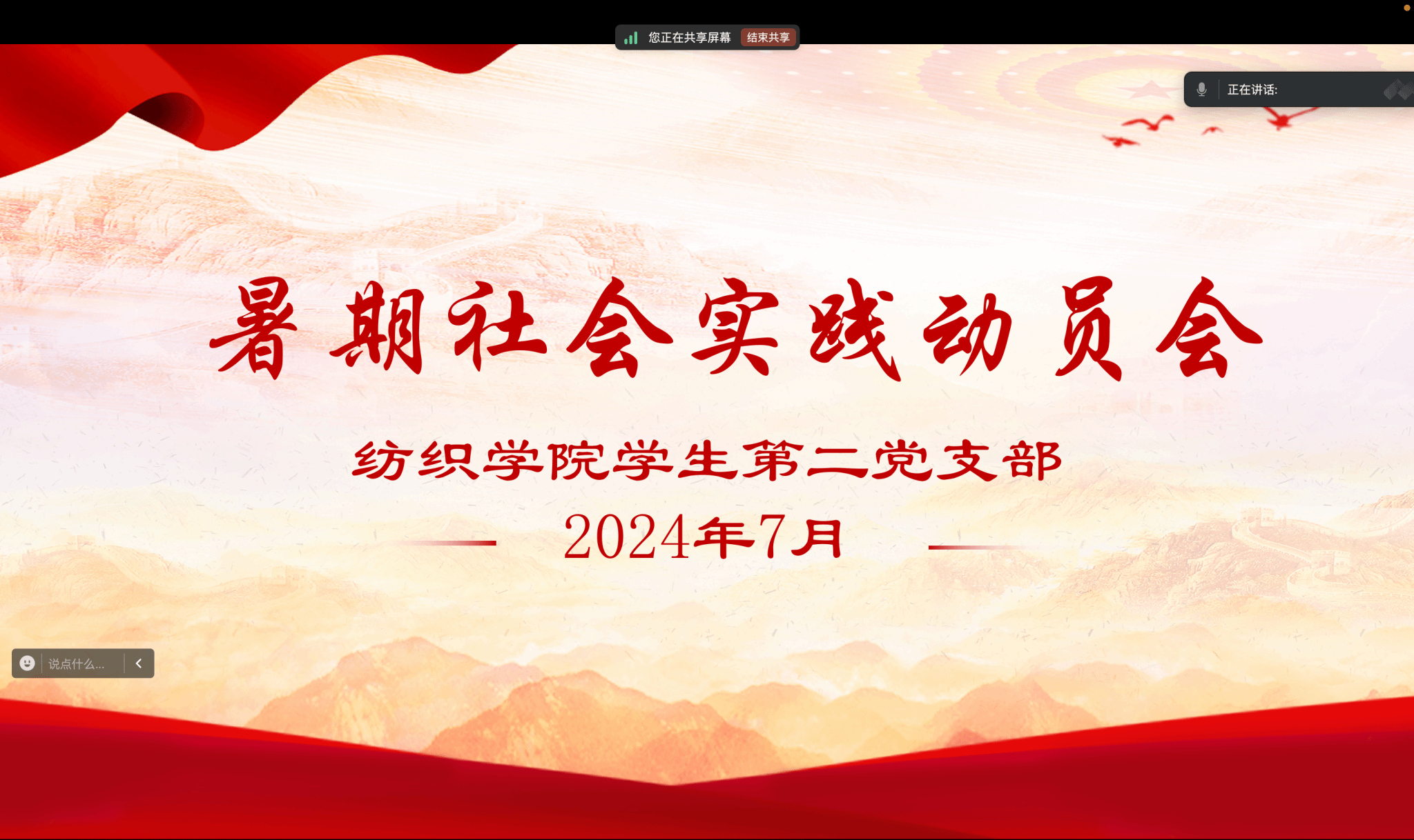 为进一步学深悟透强思想,学生第二党支部书记王然通过主题会议的形式带领支部党员、入党积极分子开展暑期社会实践动员会,推动理论与实践的深度融合,鼓励青年党员们勇担使命,深入基层沃土,投身生产一线熔炉,锤炼意志品质,追求卓越梦想,让青春在奋斗中绽放最耀眼的光芒。