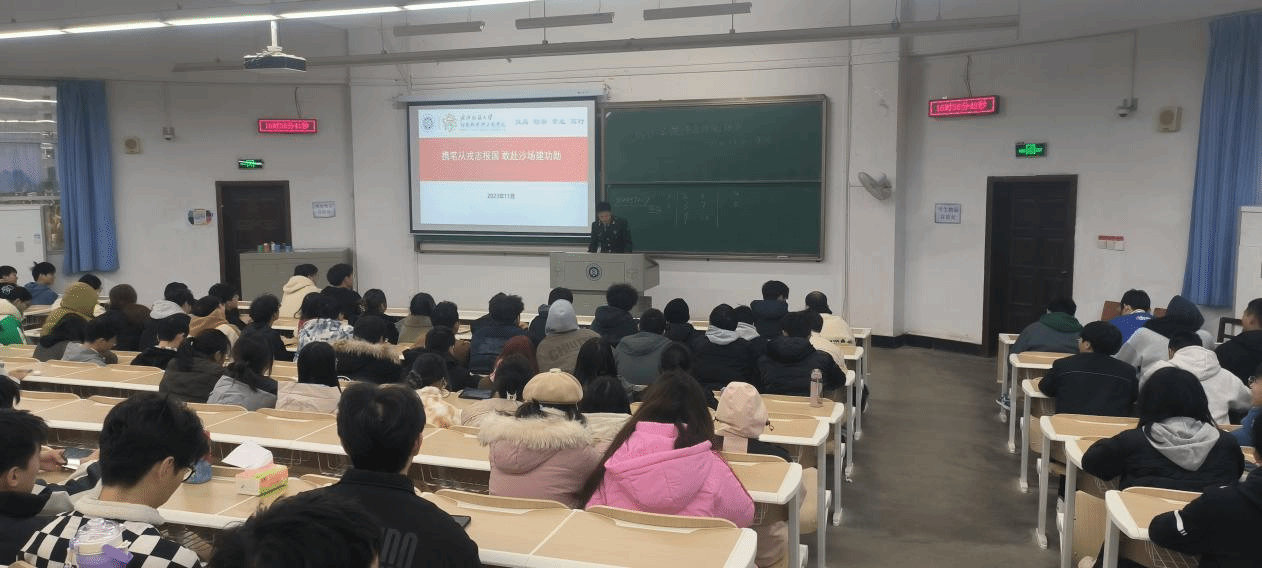 此次讲座,郭子扬讲述了自己的部队生活及感悟。他指出,这是一个充满荣誉与责任的舞台,每一天的训练都是对自身极限的挑战。从寒潮中的野外演习到紧张的实弹射击,每一次任务都是一次对意志和技能的双重考验。部队的集体荣誉成为每个人心中最闪耀的坚持,也是他们战胜一切困难的动力源泉。虽然训练辛苦,但也收获了宝贵的友情。在部队,战友不仅是同甘共苦的战友,更是生命中最真挚的朋友。无论是训练场上的相互扶持,还是在军营里的患难与共,都让部队成为一个充满团结和互助精神的大家庭。 最后,他讲述了大学生入伍优惠政策,为支持大学生参军入伍,相关部门出台了一系列政策,包括提供专业技能培训、职业发展规划等方面的支持。这为大学生提供了更多选择,有想法的同学应该抓住机会,为强国梦献出自己的青春和力量。