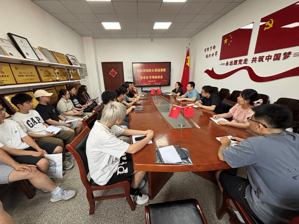 座谈会采用师生面对面交流的形式,围绕课程体系优化、教育模式创新、实践能力培养等关键议题展开深入探讨。蔡光明院长指出学院致力于培养德智体美劳全面发展的新时代纺织人才,希望同学们能结合自身学习经历,就课程安排、实习实践、科研创新、就业指导等方面提出了建设性意见和建议,为学院进一步发展添砖加瓦。