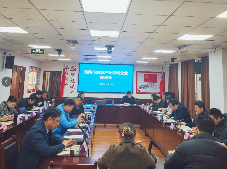 12月18日上午,黄冈市召开纺织产业领域企业座谈会,市委常委、常务副市长陈俊出席会议并讲话。我校纺织科学与工程学院曹根阳教授、张文博士、陶丹博士,化学与化工学院高级实验师涂超受邀参会,与地方政府、科技部门及重点企业代表共商纺织产业转型发展大计。