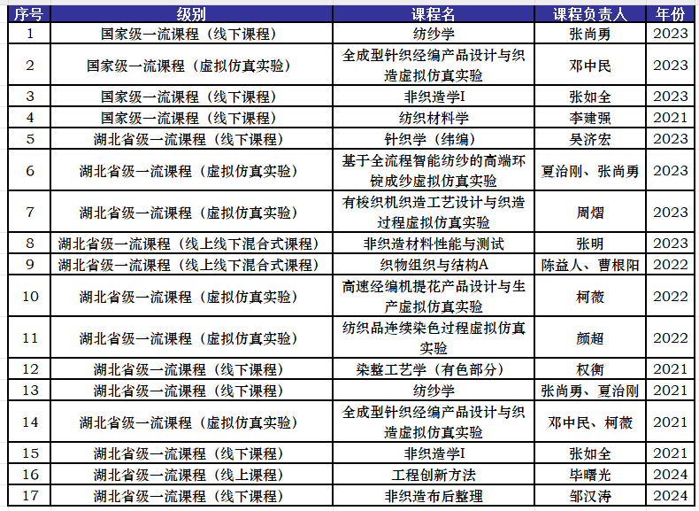 近日,湖北省教育厅公布2024年省级一流本科课程认定结果,威廉希尔体育申报的《工程创新方法》、《非织造布后整理》两门课程成功获批立项。至此,威廉希尔体育省级一流本科课程总数增至13门。