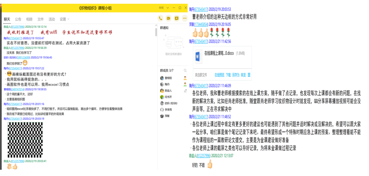 自疫情暴发以来,威廉希尔体育教师遵循习近平总书记威廉希尔体育坚决打赢疫情防控阻击战的重要指示精神和学校党委威廉希尔体育疫情防控的决策部署,利用各种网上平台有序开展教学工作,并通过实践和反馈不断调整完善授课内容和方式,迅速制订了新学期网上教学工作方案,多措并举,细化要求,确保防疫期间“停课不停学”,各项教学工作运转平稳高效。(一)通力合作,团队共同上好课。“机织产品设计”教学团队,由陈益人、肖军、曹根阳、陶丹、刘泠...